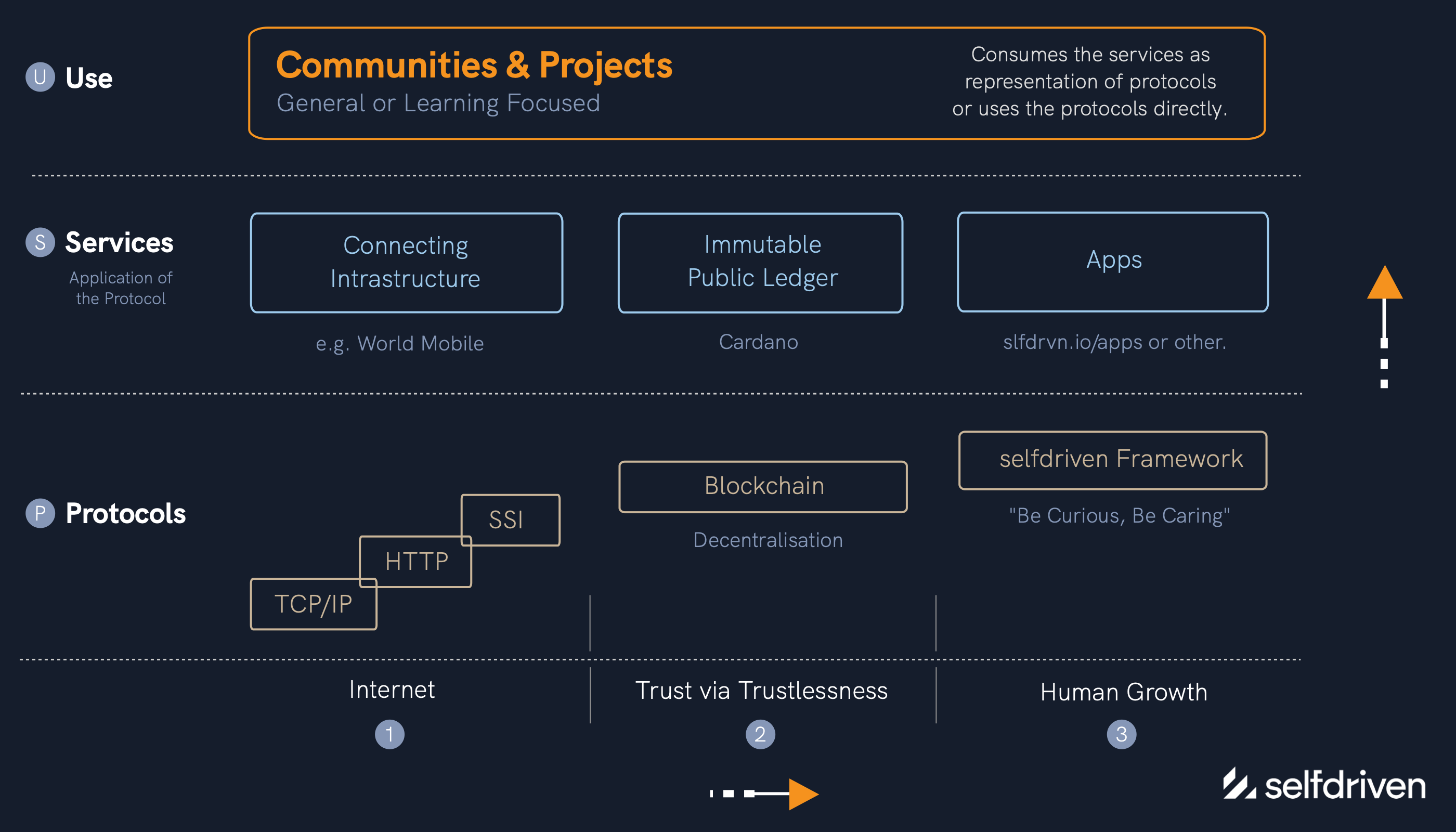 As an open framework, selfdriven as a community and protocol works well with other communities, including with decentralised premissionless on-chain communities and associated services.
