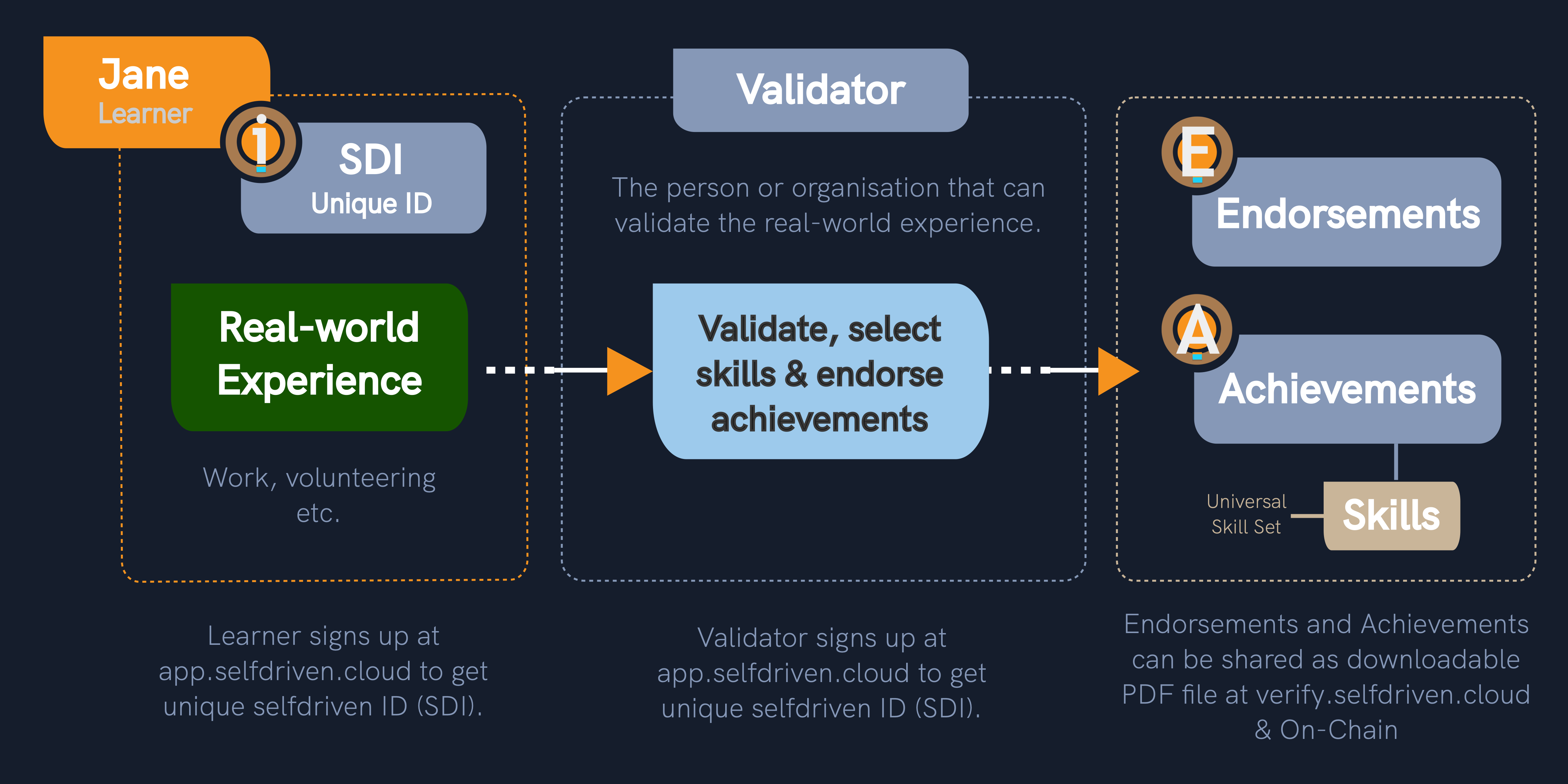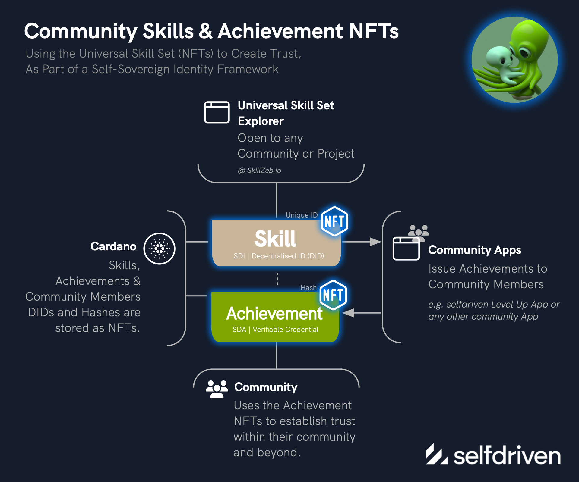 - Allocation of selfdriven Learning Partner Levels 1 to 20 skill by selfdriven Commmunity to selfdriven Octo, so can issue learning-partner achievements (skills) on behalf of the selfdriven Community - so they can then verify achievements/skills to learners.