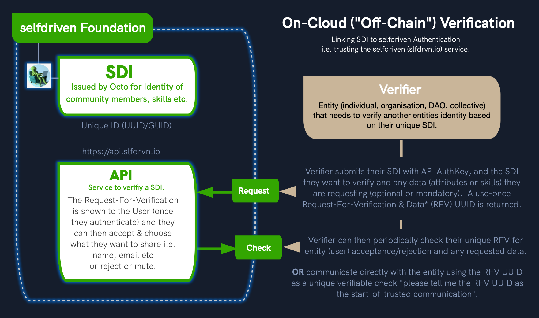 The selfdriven framework provides a number of ways to enable someone or something to verify information that has been generated via it's organisational system (Framework & App).