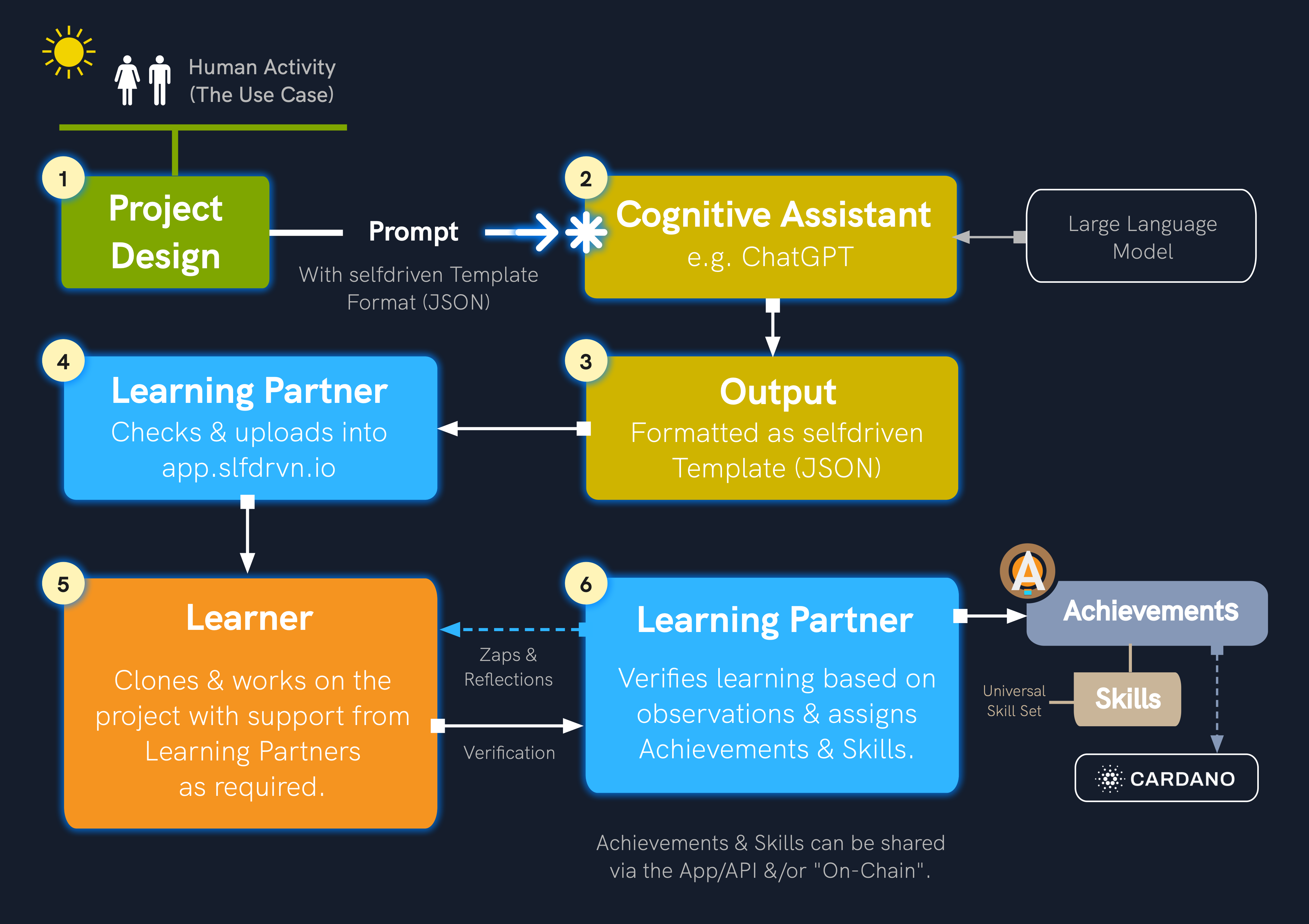 The template can also be tokenised as an SDI digital-asset (with DID) on the Cardano Blockchain as reference input for any assigned Achievements & Skills. This can be used as a resource for building trust with other learning-partners.