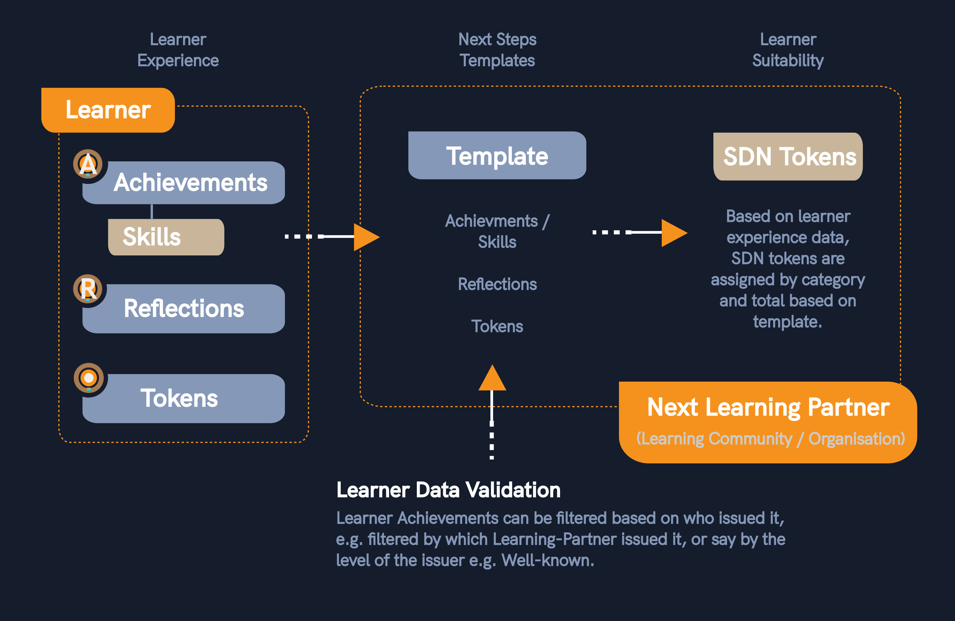 The learner can share their data with learning-partners (organisations & communities) to help