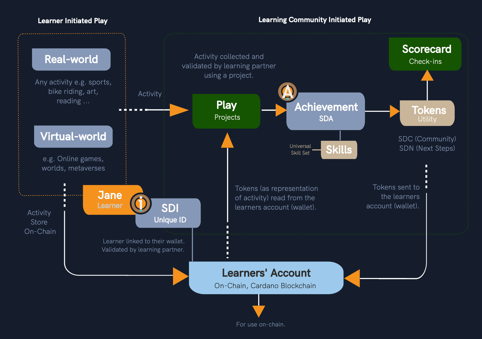 selfdriven community (SDC) and achievment (SDA) tokens.